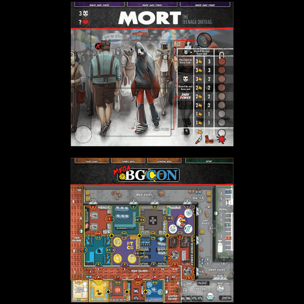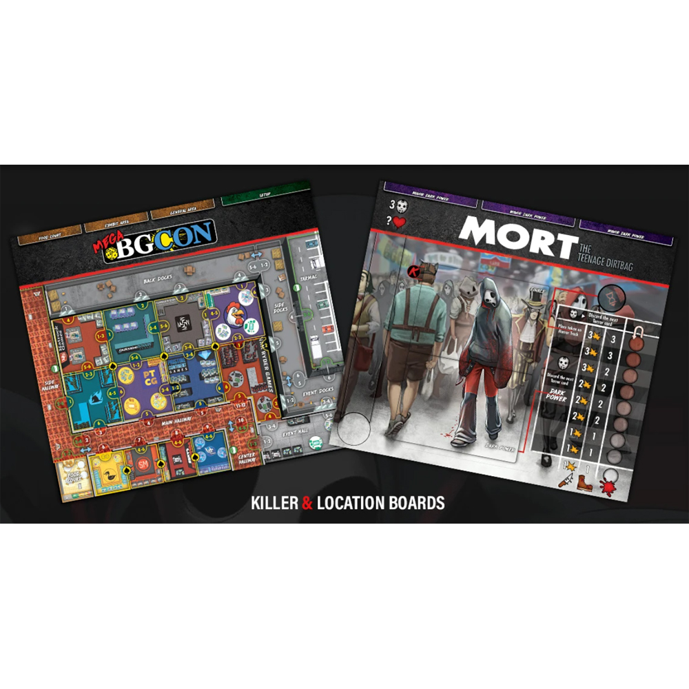 A Mega Convenção de Jogos de Tabuleiro está lotada de participantes empolgados, todos ansiosos pelos lançamentos mais quentes das melhores editoras da indústria. Eles estão TÃO empolgados que se recusam a sair do salão da convenção! Você vai precisar causar um pouco de pânico por conta própria se quiser salvar esses jogadores deslumbrados do fim da lâmina de Mort!