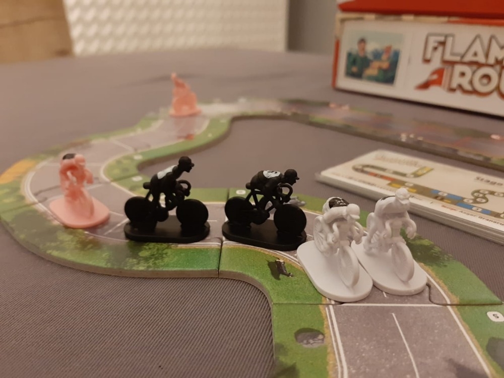 Flamme Rouge: Peloton inclui variantes para jogar solo e para jogos com até doze jogadores, cada um controlando apenas um piloto.