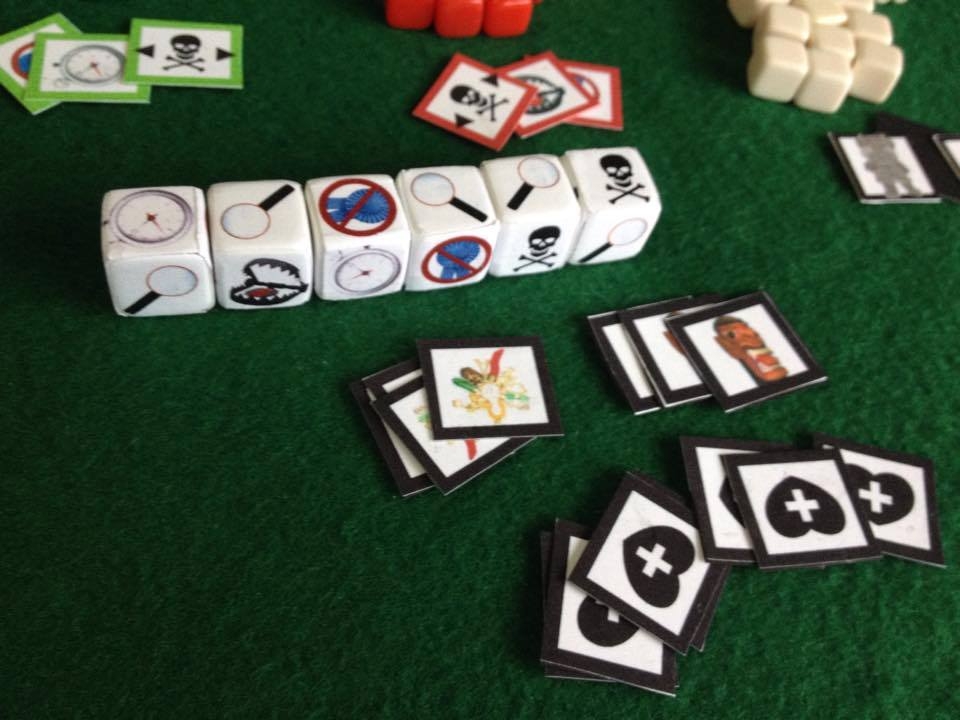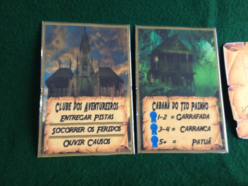 Cada jogador recebe seu marcador de investigador (meeple) e também marcadores de sucesso que serão usados para marcar o avanço na investigação de cada Evidência. Toda carta a ser explorada tem relação com três criaturas do nosso folclore dando a oportunidade aos jogadores de pensarem em qual delas pretendem perseguir. Além disso, sempre é possível realizar ações na estalagem inicial, o Clube dos aventureiros, ou então conforme se obtém pontos de Renome e avanços no jogo, dar uma corridinha até a Cabana do Tio Painho para curar o personagem ou conseguir certas melhorias.