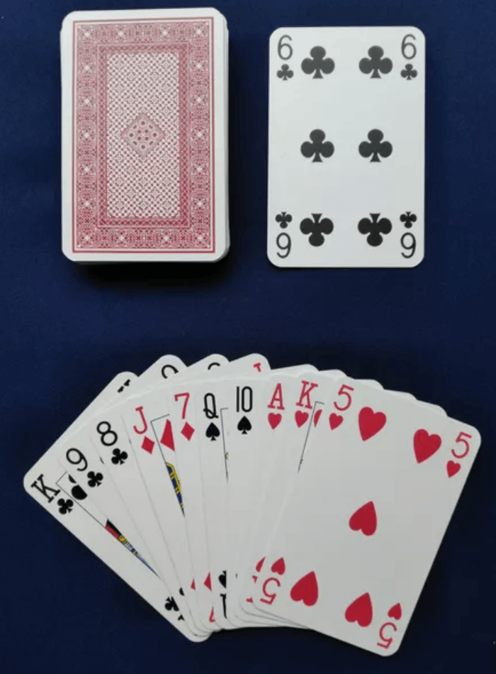 O jogo usa um baralho padrão de 52 cartas, mais 1 coringa. Dez cartas são descartadas aleatoriamente, e então o jogador compra 10 cartas de um baralho embaralhado. O jogador pode então descartar qualquer número de cartas, comprando 2 cartas para substituir cada carta descartada. O jogador pode escolher qualquer naipe ou nenhum como trunfo.
