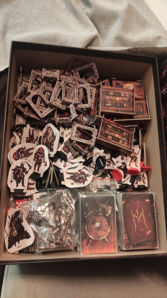 165 cartas de jogo (magias, equipamentos, relíquias, exploração e monstros).