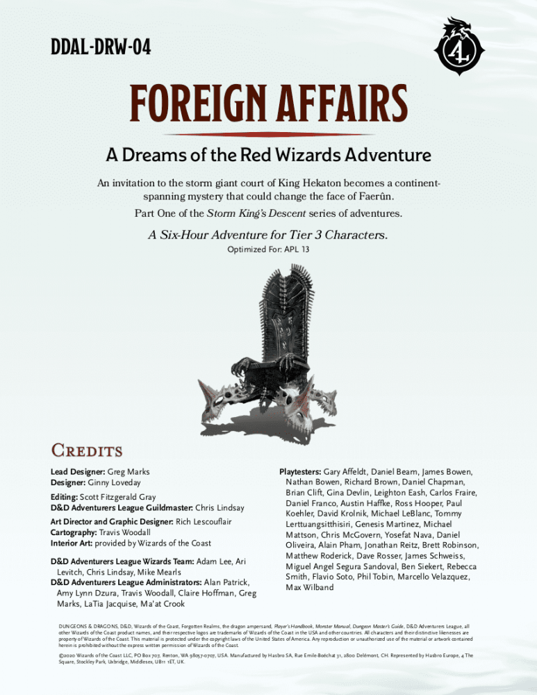 Forgotten Realms (D&D 5th Edition) - DDAL-DRW04: Foreign Affairs (2020)
