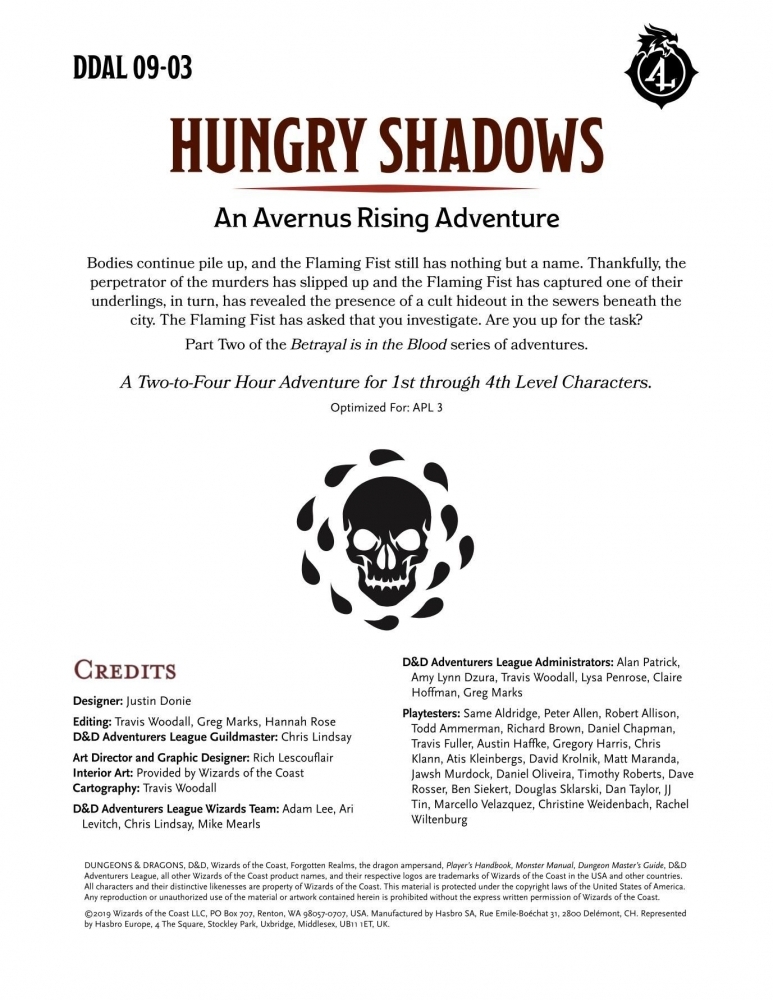 Forgotten Realms (D&D 5th Edition) - DDAL09-03: Hungry Shadows (2019)