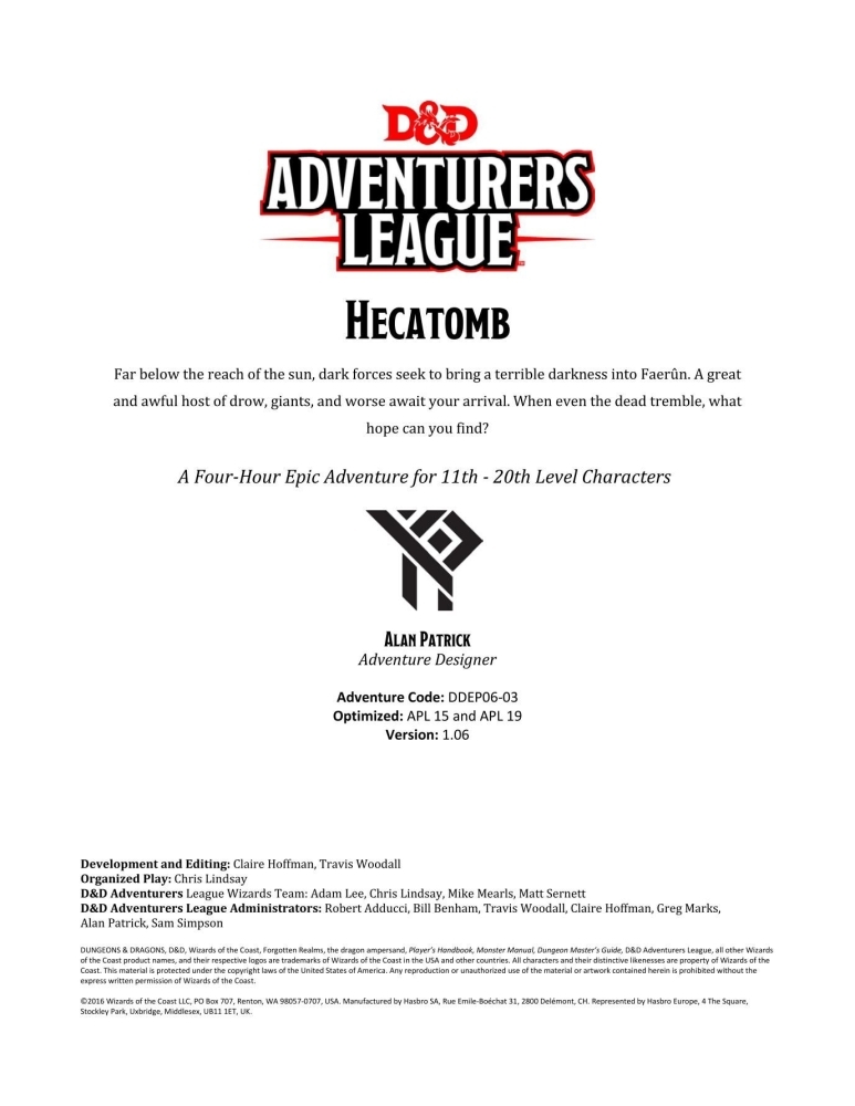Forgotten Realms (D&D 5th Edition) - DDEP6-03: Hecatomb (2017)