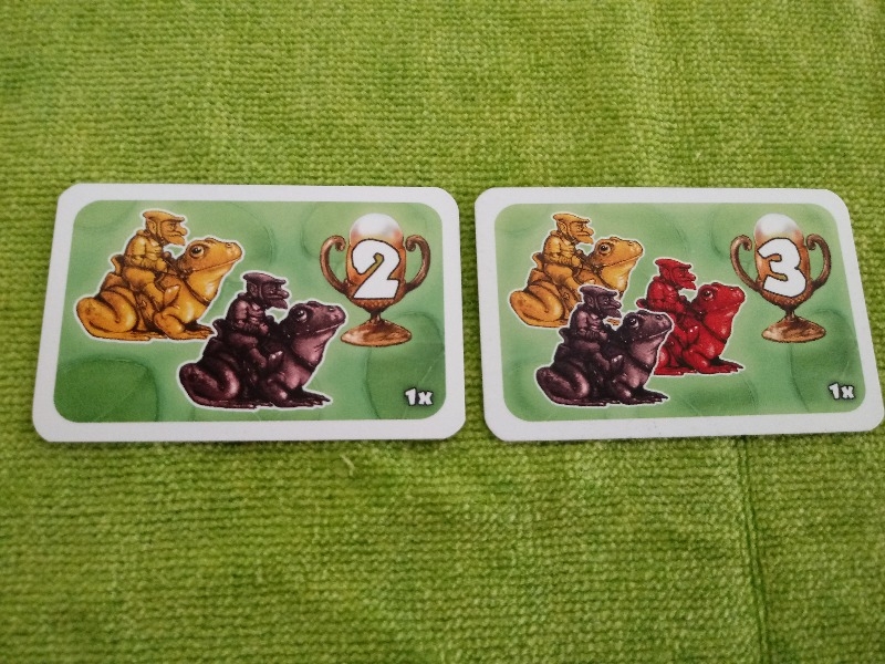 Frogriders é um jogo de família tático em que você coleta as figuras de plástico moldado sob encomenda, fazendo-as saltar uma sobre a outra. Cada um dos Frogriders coletados permite que você mantenha-o para marcar ou devolvê-lo para a aldeia da tribo, a fim de usar sua capacidade especial. Devido as muitas cartas de privilégio diferentes e várias cartas de pontuação (dos quais apenas alguns são usados em cada jogo), há um monte de nuances táticas para descobrir e muitas estratégias para empregar e ganhar em Frogriders!
