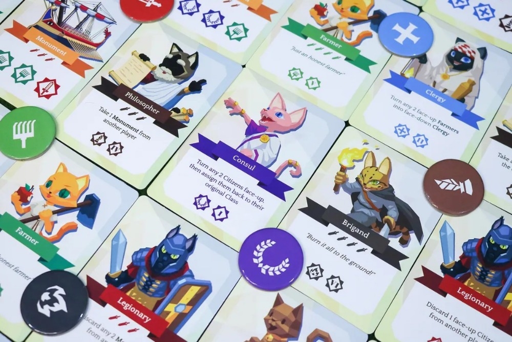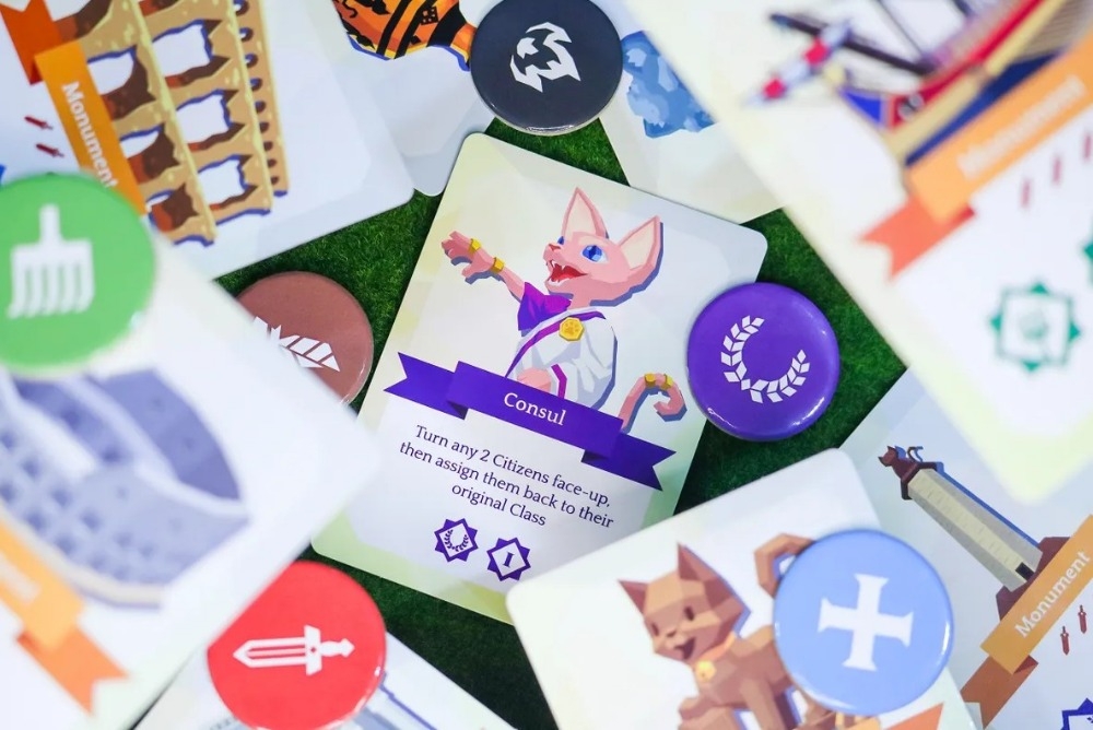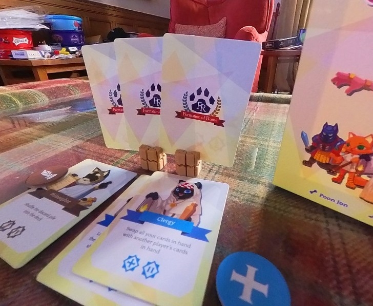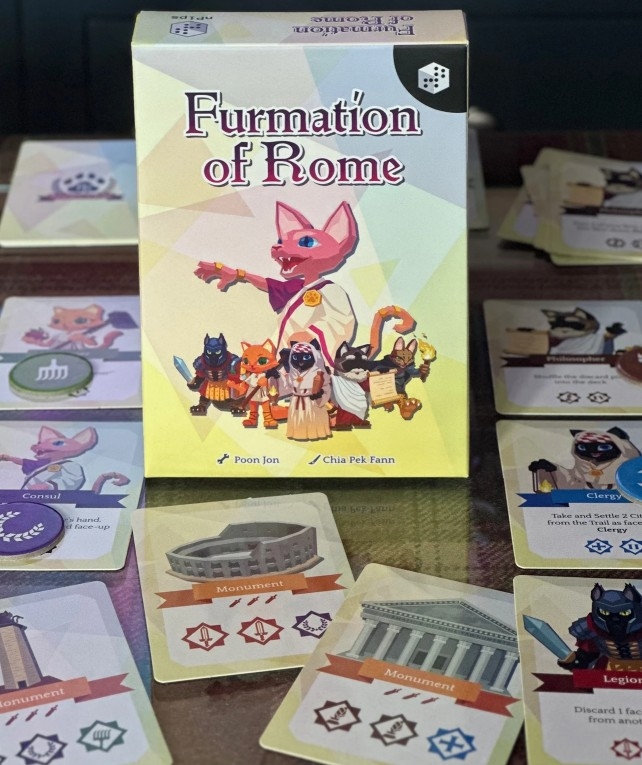 Furmation of Rome é um jogo rápido de maioria de área, onde os jogadores jogam cartas em sua própria área para disputar tokens de influência ou usam os efeitos das cartas para perturbar o tabuleiro.
