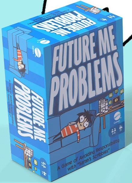 Future Me Problems explora todas as responsabilidades que preferimos adiar, mas de uma maneira que apenas preguiçosos como nós podem realmente apreciar. É um jogo de cartas que não apenas celebra a procrastinação, mas também o recompensa por isso! Fizemos uma parceria com Sarah Andersen para ajudar a produzir este hilário jogo de cartas baseado em seu premiado webcomic, Sarah's Scribbles. Veja como funciona: