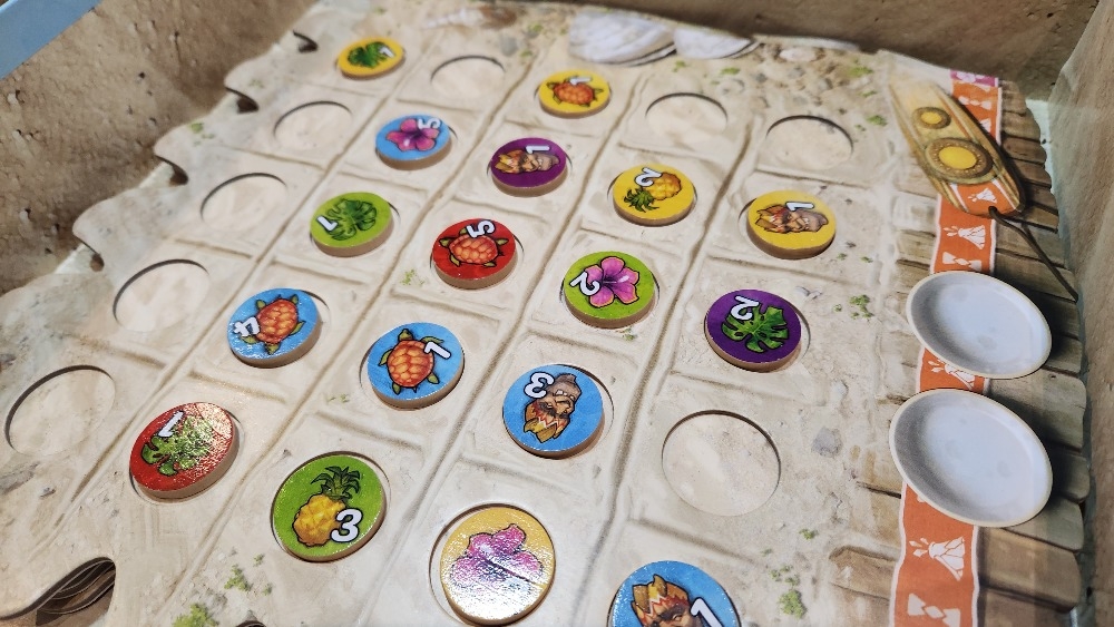 Se alguém comprou uma ficha de amuleto da sorte no início da rodada, eles compram uma ficha de substituição, então todos os jogadores podem escolher usar e descartar uma de suas fichas de amuleto da sorte. Essas peças permitem que você troque as fichas da sua reserva, coloque uma ficha no tabuleiro como um curinga, troque um quadro de pontuação já preenchido por outro e assim por diante. Cada peça de amuleto da sorte não utilizada vale pontos no final do jogo. Após 25 rodadas, os jogadores somam seus pontos para placas de pontuação, primeiras peças, peças de amuleto da sorte e bônus para ver quem tem a pontuação mais alta.