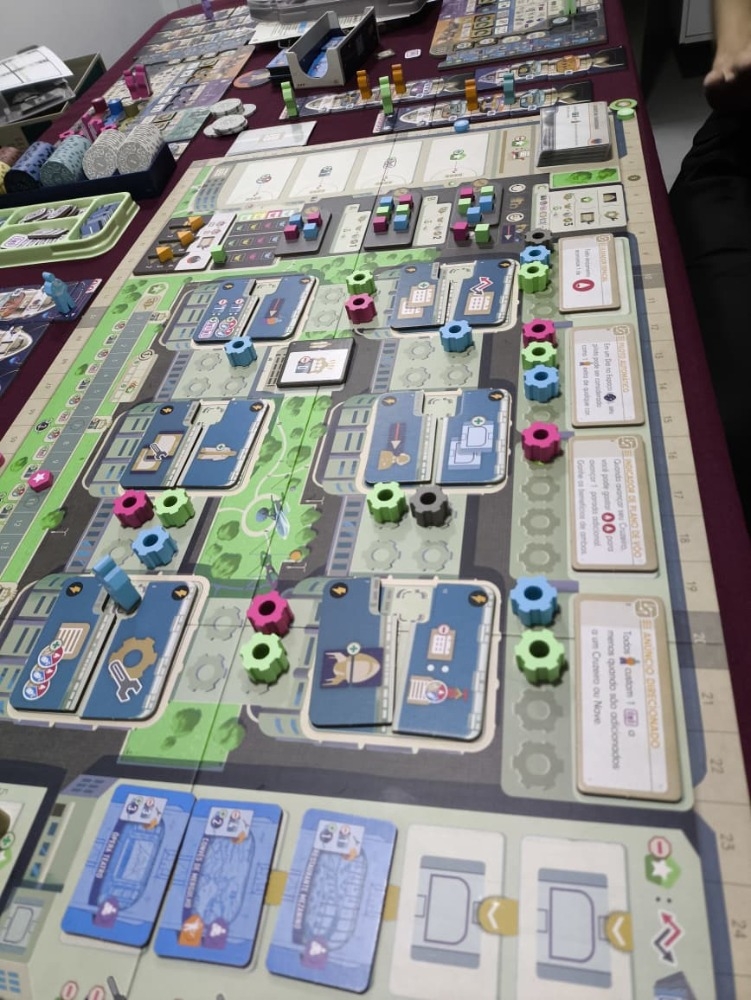 Ao longo do jogo, você também estará competindo com seus colegas supervisores para completar as metas da empresa, o que lhe renderá cubos de progresso ao longo do jogo. Os cubos de progresso também são colocados quando você lança ônibus espaciais e, quando um certo número de cubos é colocado na trilha de progresso da empresa, o jogo termina e o jogador com mais Pontos de Vitória se torna o novo CEO da Galactic Cruise.