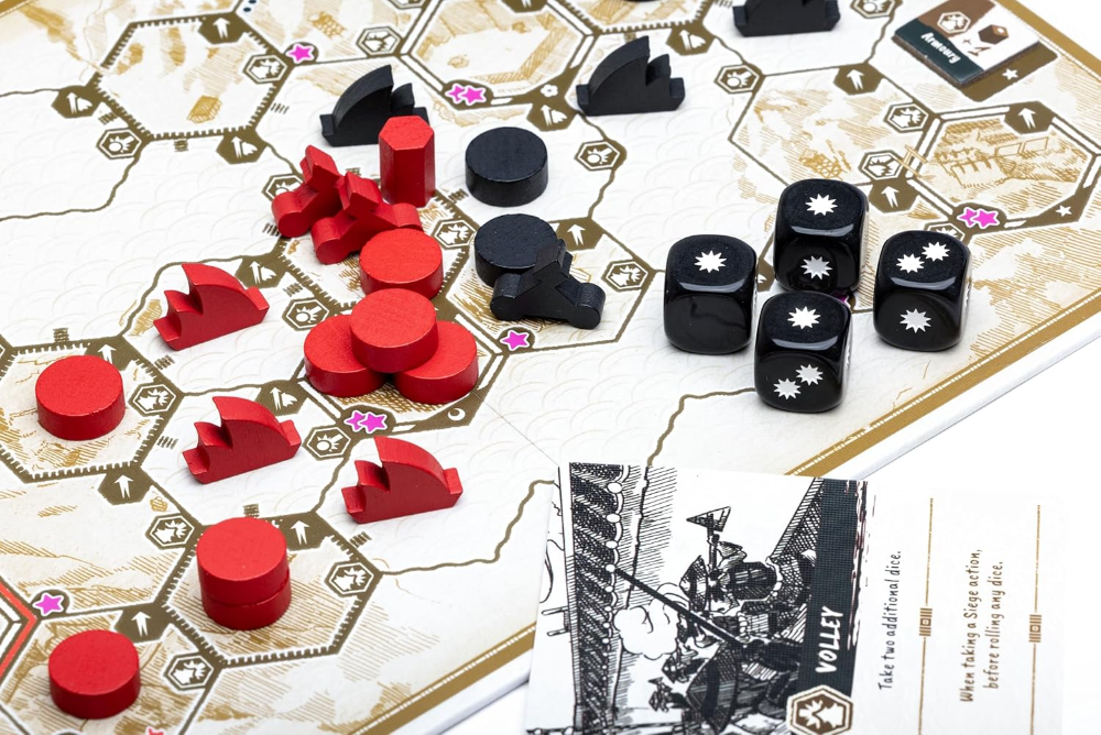 Da premiada dupla de designers David Thompson e Trevor Benjamin, este jogo compacto para dois jogadores combina o dinamismo de um jogo de guerra com a tomada de decisões acirrada dos jogos de alocação de trabalhadores.