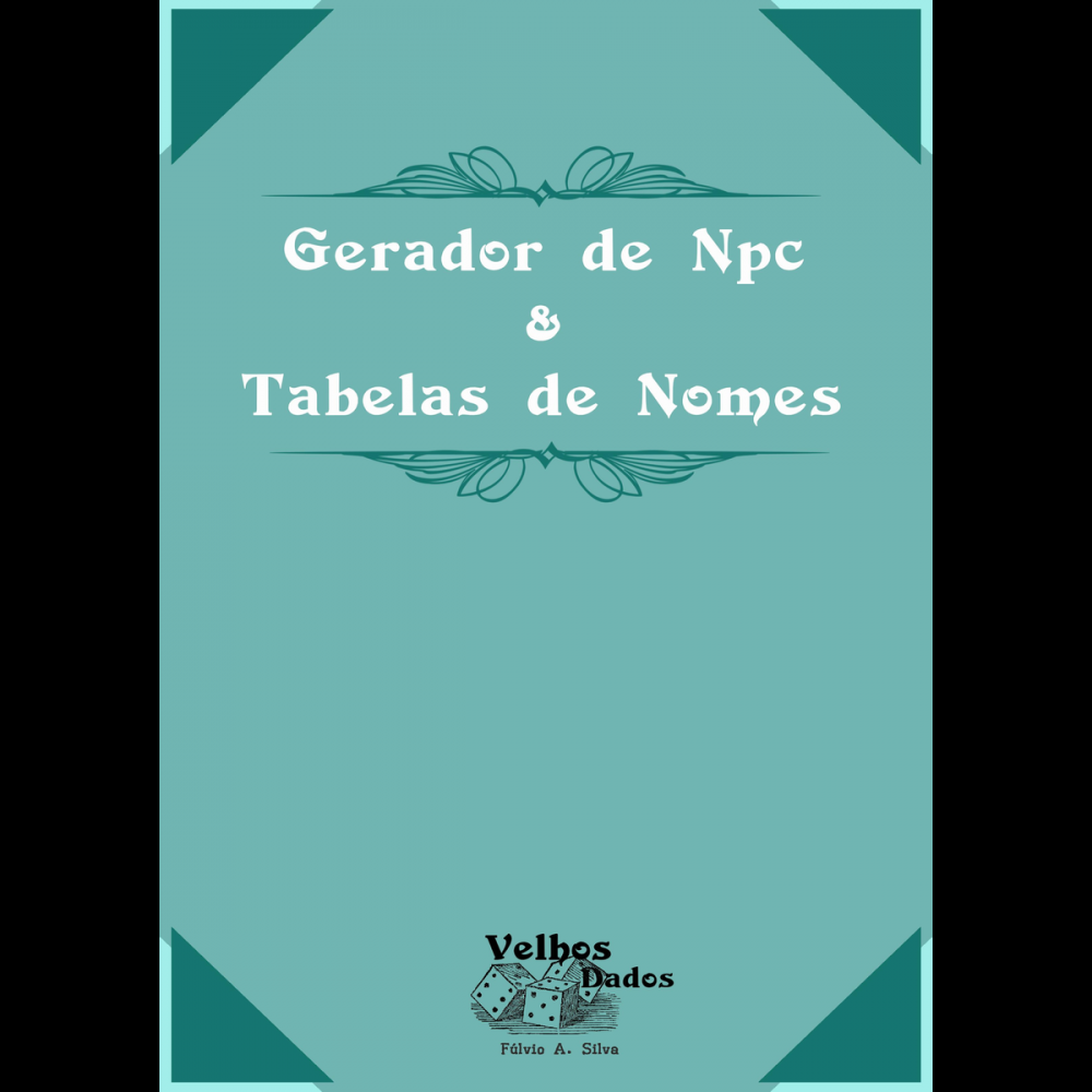 Gere Npc's para sua aventura ou campanha, rapidamente com esse suplemento. Aqui voce encontrara todos os requisitos basicos para criar npcs/coadjuvantes unicos para sua aventura, juntamente com mais de 800 nomes.