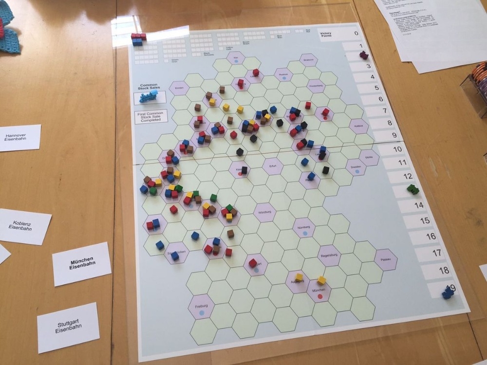 Você é um industrial alemão competindo com outros industriais alemães na criação das ferrovias recém-inventadas. Invista sabiamente na criação e expansão dessas ferrovias, acumulando pontos de vitória no processo enquanto colhe dividendos monetários de suas decisões bem ponderadas. German Rails dura cerca de uma hora com 3 a 5 jogadores, a maioria dos Pontos de Vitória vence o jogo. O dinheiro é apenas uma ferramenta, embora seja uma ferramenta muito importante na construção das ferrovias da Alemanha!