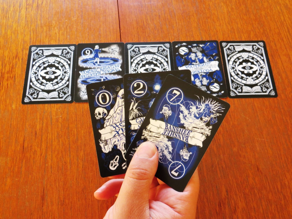 Ghost Hunter é um jogo de cartas para 2 – 7 jogadores, com duração entre 10 e 30 minutos. Em cada turno, jogadores jogam cartas de valores cada vez maiores numa pilha central. Se um jogador conseguir jogar um grupo de 3 cartas de uma vez, eles capturam a pilha. Várias cartas vem com regras especiais que manipulam a rodada. O primeiro jogador que usar todas as suas cartas termina o jogo e os jogadores então contam a pontuação das cartas capturadas menos todas as cartas que não conseguiram se livrar. O maior pontuador vence o jogo.