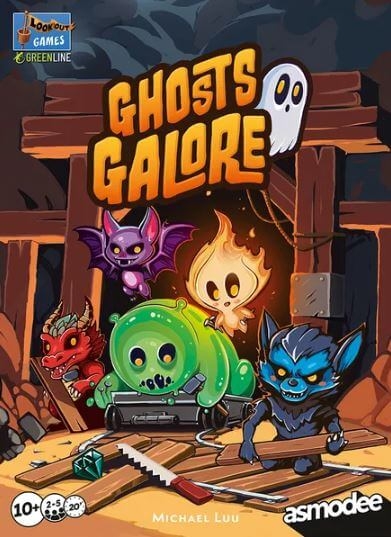 Em Ghosts Galore, você ajuda monstros a construir um divertido trem fantasma em um poço de mina abandonado. Cada monstro quer que os trilhos sejam colocados do seu jeito, então VOCÊ precisa mantê-los calmos, coordenar e otimizar o percurso. Ao longo de 8 rodadas, cada jogador constrói um trilho único em seu espaço de 3x3 para o trem fantasma.