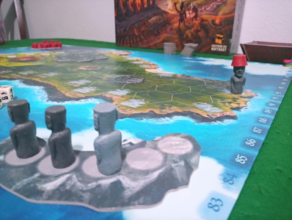 Neste jogo você é o líder de um clã durante a Era Dourada da Ilha de Páscoa. O tabuleiro de jogo representa um mapa simplificado da ilha. As plataformas de pedra representam os Ahus sobre os quais os Moais eram erigidos, sempre voltados de costas para o mar, olhando para o interior da ilha.