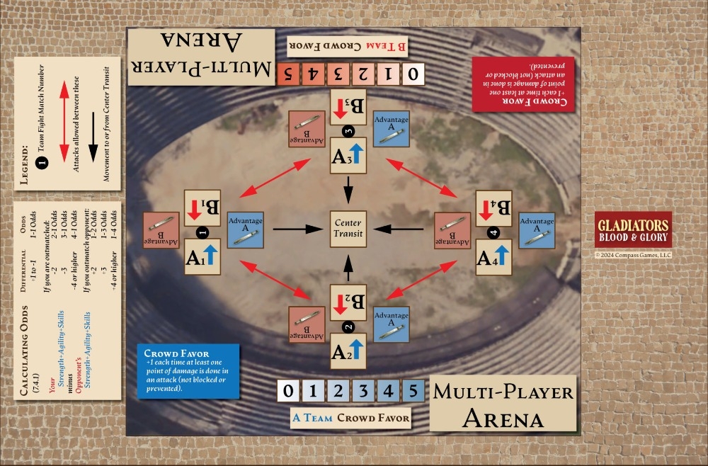 Gladiators: Blood & Glory é um jogo de 2 jogadores ou solitário que coloca você no comando de administrar um Ludus – uma escola de treinamento de gladiadores romanos. Você tomará todas as decisões de treinamento, equipamento e logística que um Lanista tomaria, e tomará as decisões táticas para seus gladiadores enquanto eles tentam sobreviver na Arena.