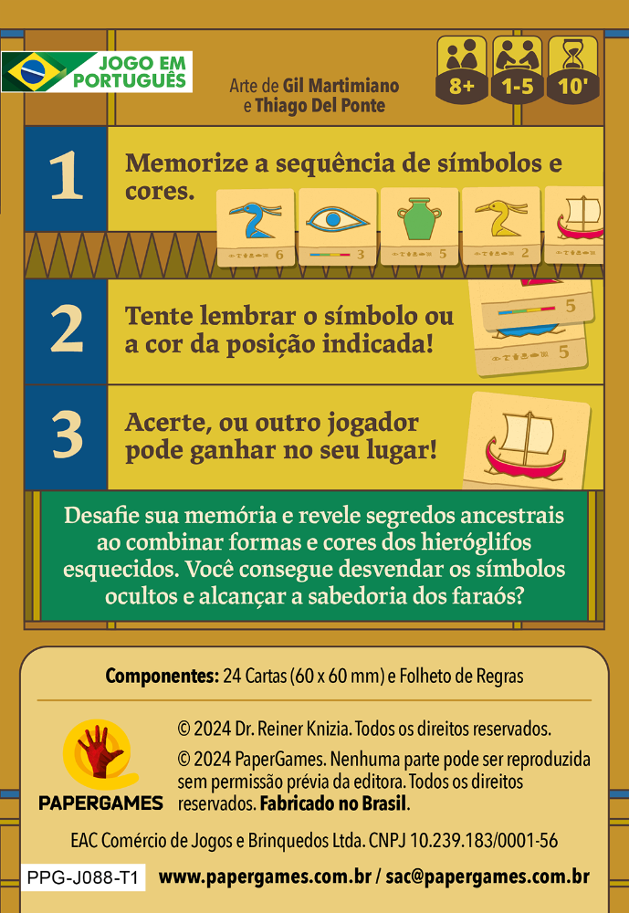 - UM JOGO DE MEMÓRIA COM O TOQUE DOS FARAÓS! Glifos eleva o clássico jogo de memória a novas alturas, combinando as posições dos hieróglifos e suas cores para desafiar as mentes mais aguçadas!