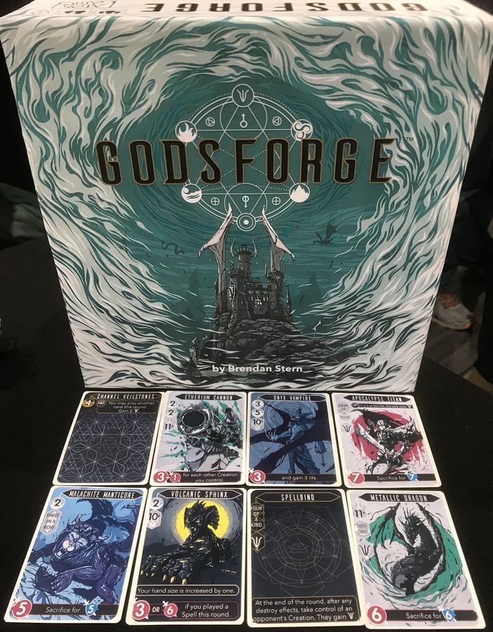 Godsforge apresenta jogo simultâneo, com cada jogador atacando o jogador à esquerda e se defendendo contra o jogador à sua direita. Em um turno, todos jogam simultaneamente quatro dados, depois cada jogador coloca uma das quatro cartas viradas para baixo na frente deles. Em qualquer ordem que você quiser, os jogadores revelam essas cartas, pagando o custo delas por meio de números específicos em dados rolados, a soma de dados rolados, nuvens de neve ou uma combinação dos itens acima. No dado, 1s pode ser qualquer número que você desejar, enquanto um 6 não utilizado pode ser gasto para adquirir uma pedra-véu.