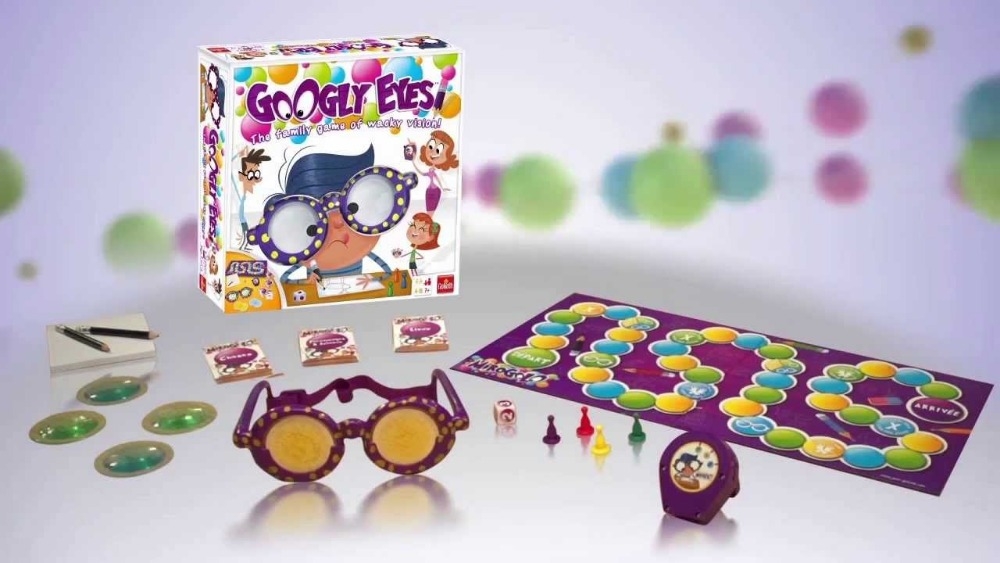 Os óculos vêm com três conjuntos de lentes que variam de mudanças leves a uma diversão alucinante, para que ninguém possa ver (ou desenhar) diretamente - sua visão vai saltar das lentes. Googly Eyes é um divertido jogo que dá uma reviravolta em jogos clássicos de desenho, permitindo jogadores de diferentes idades e níveis de habilidade, compitam em igualdade de condições, já que os óculos fazem com que seja divertido e desafiador para todos.