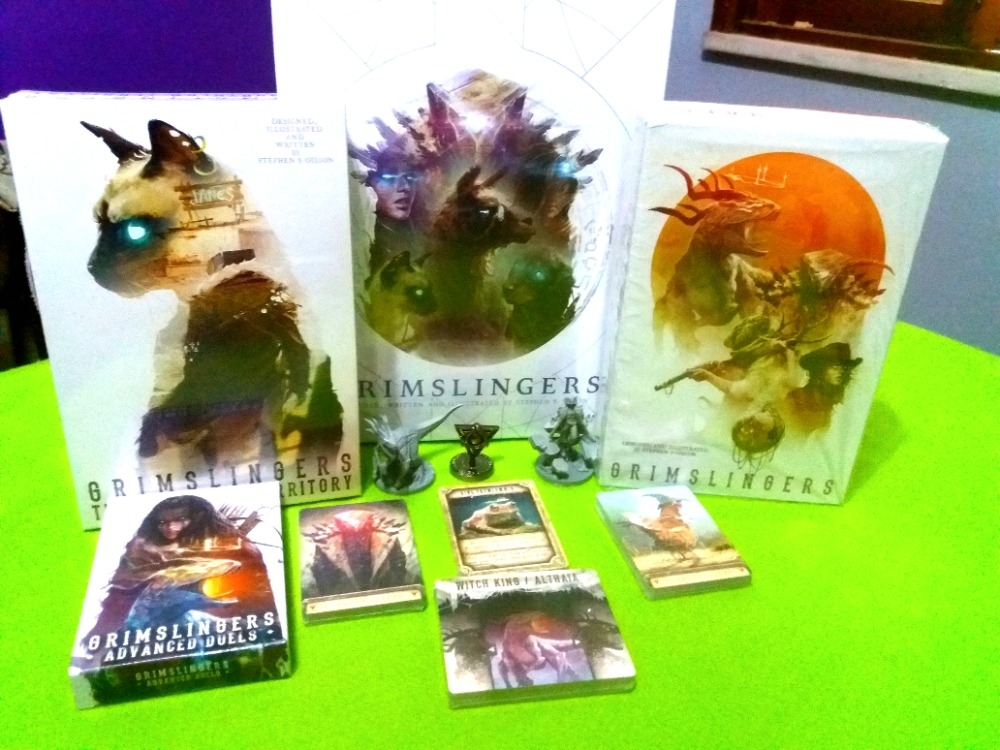Grimslingers é um jogo de cartas sci-fi de fantasia, temático e estratégico, que possui dois modos diferentes de jogo: versus e cooperativo. No modo versus, 2-6 jogadores batalham cabeça-a-cabeça em equipes ou um free-for-all usando uma grande variedade de magias, itens e habilidades.