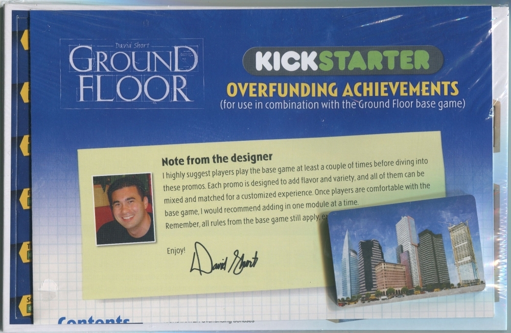 Essas conquistas de superfinanciamento são módulos de mini-expansão para o jogo base Ground Floor. Eles foram originalmente dados como bônus do Kickstarter para a campanha Kickstarter de 2012 do Ground Floor.