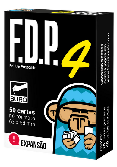 Expansão com 50 novas cartas para o conjunto básico de FDP. São 40 novas cartas brancas com respostas e 10 novas cartas pretas com perguntas que podem (e devem) ser misturadas com as cartas do conjunto básico de FDP.