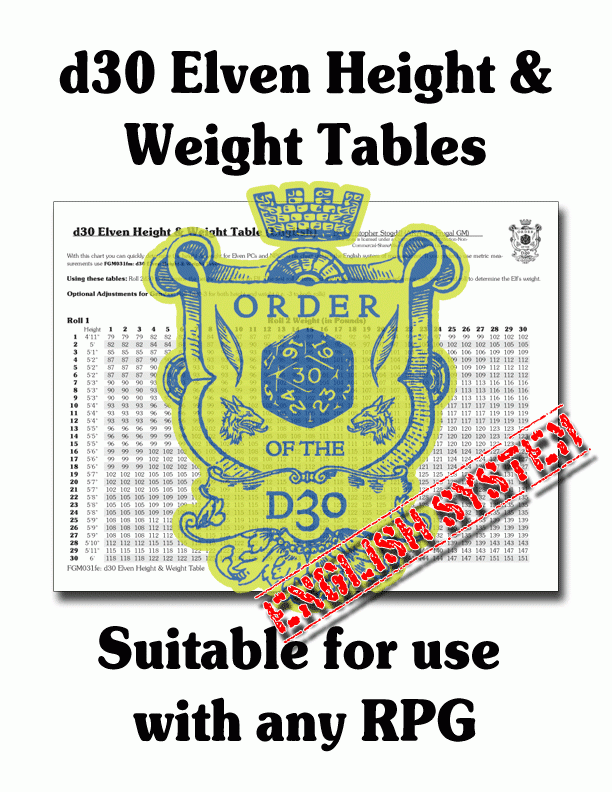 2. HackMaster (5th Edition Advanced): FGM031f - d30 Elven Height & Weight Tables