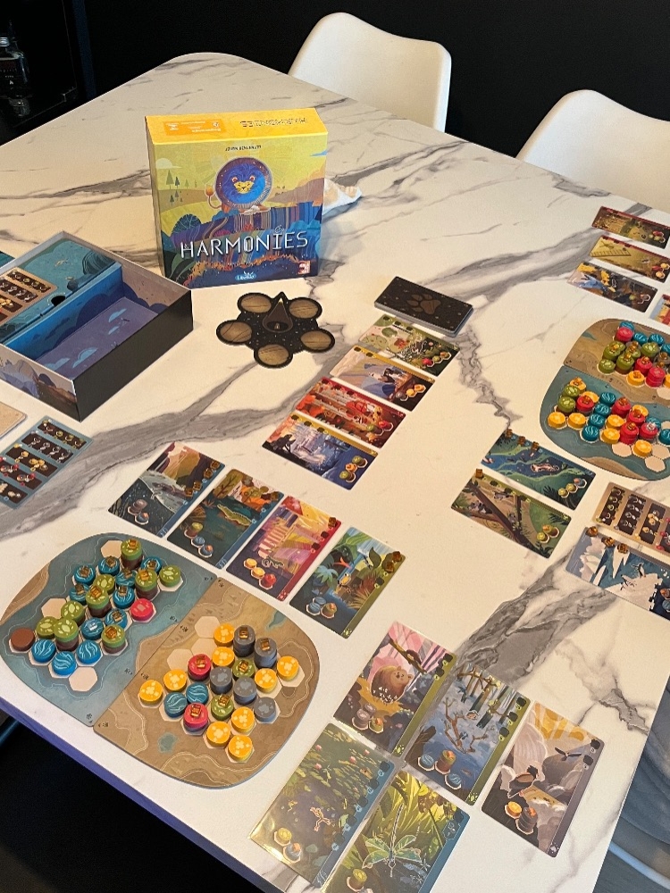 Jogo em andamento utilizando dois tabuleiros para cada jogador, um virado de cada lado. Fazendo isso conseguimos estender as partidas e deixar ainda mais desafiador.