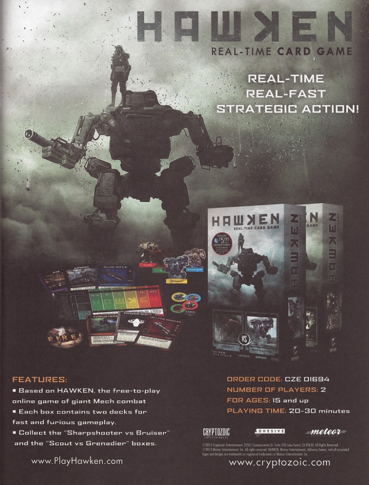 Baseado no video game homônimo. Pegue um Mecha e lute... rápido! Seu deck de cartas contêm armas primárias e secundárias, habilidades especiais e vários outros instrumentos de guerra de alta tecnologia. Saque cartas e coloque-as na mesa o mais rápido que puder, mas tenha cuidado para não super-aquecer! Se não quiser jogar uma carta, coloque-a virada para baixo que ela funcionará como proteção durante esse turno, absorvendo dano do seu oponente. A ação é em tempo real, mas a rodada acaba quando um jogador pega a ficha de "Fogo!" no centro da mesa. A velocidade dos Mechas são calculadas, determinando a distância. Então, as armas são disparadas e o aquecimento é gerado. Rápidos reflexos lhe ajudarão, mas uma mente rápida vencerá toda vez!