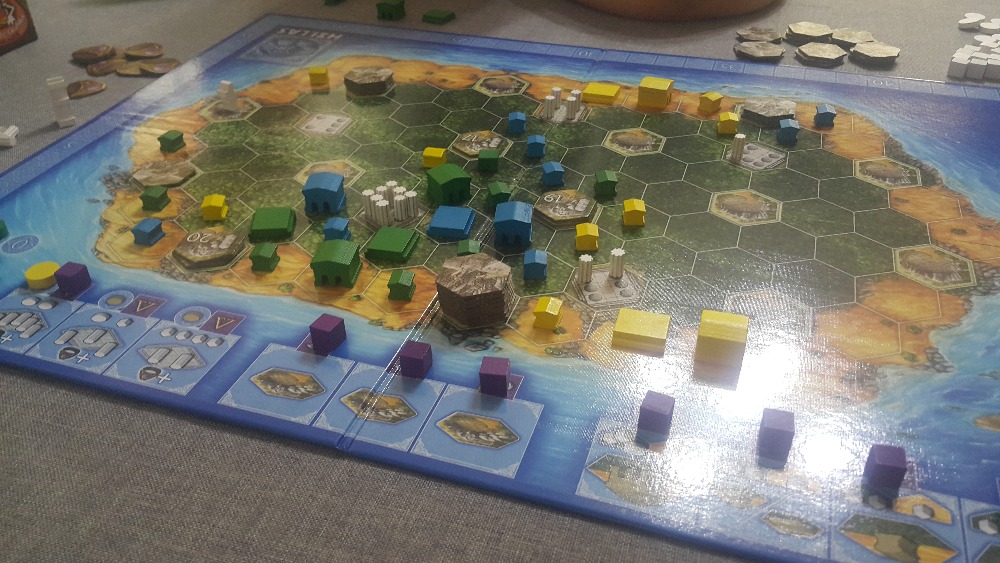 Estrategicamente construa seus assentamentos na ilha para obter o maior lucro de pedreiras. O tempo é crucial: a maioria das ações escolhidas também podem ser realizadas imediatamente por todos os outros jogadores.