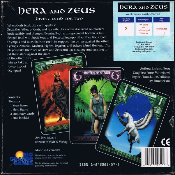 Os jogadores estão se opondo com deuses da mitologia grega, Hera e Zeus, empenhados em destruir o outro, porque cada um raptou o mortal favorito do outro. Jogadores expõem cartas em três colunas opostas, matrizes de quatro carreiras. Cartas sobre as bordas das colunas opostas pode ser usado para atacar, o que significa que o valor de combate das cartas são comparados e o perdedor é destruído. No entanto, as cartas são jogadas de bruços, acrescentando um elemento de blefe e dúvida para o jogo.