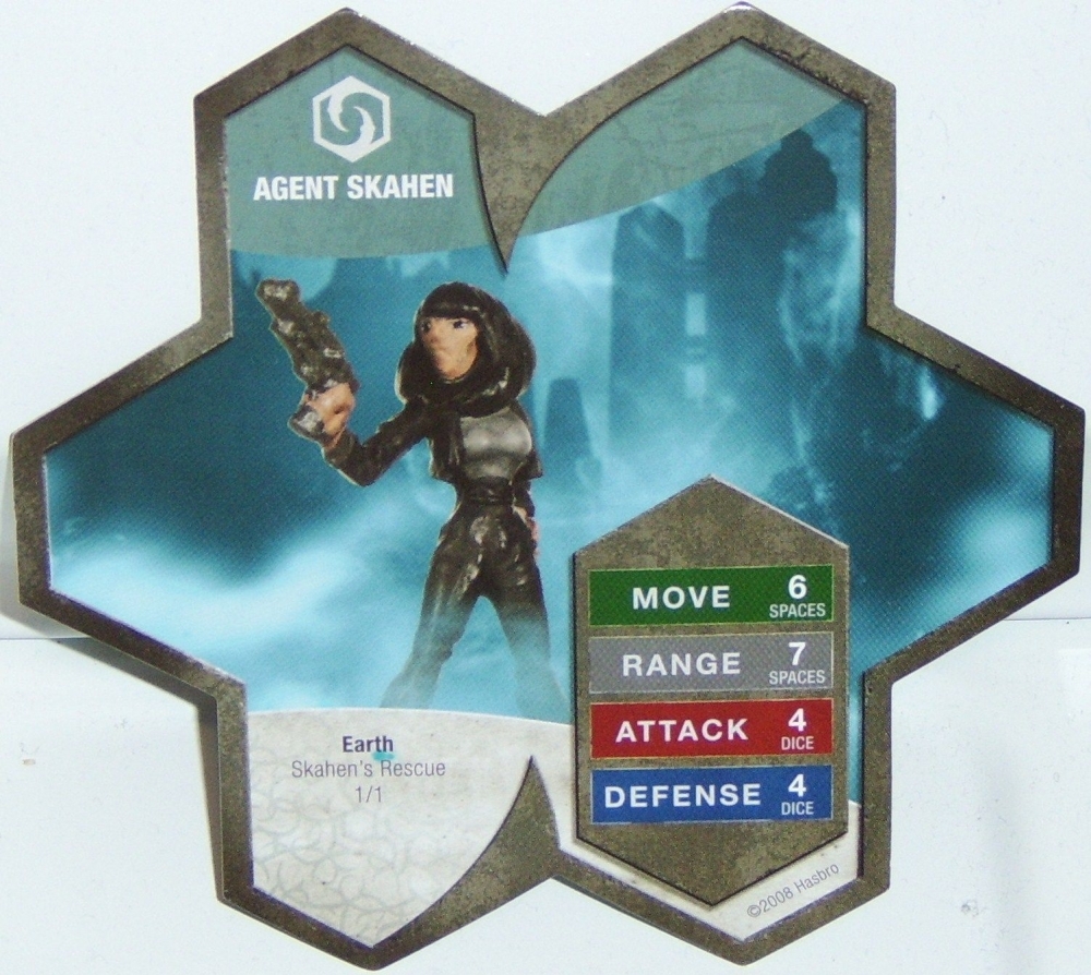 Agente Skahen foi a figura exclusiva da GenCon de 2008, para uso na série de jogos HeroScape. É uma repintura de um dos Agentes Nakita da Onda 5.