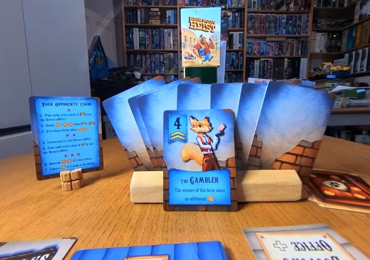 Em High Noon Heist, os jogadores assumem o papel de bandidos que tentam roubar uma cidade do oeste selvagem e a lei tenta detê-los. A cada turno, os jogadores selecionam um personagem único para se comprometer com o local do assalto, considerando cuidadosamente o efeito único do edifício, bem como o que seu rival irá jogar.