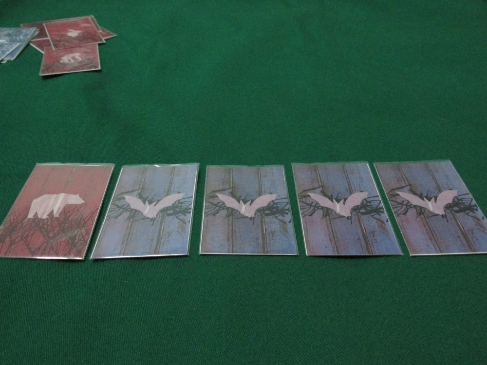 - Se as cartas são de todos os três tipos, em seguida, se houver uma maioria de bestas ou aves, o lado com o maior número de cartas e os morcegos obtém um ponto. Caso contrário, se o número de bestas e pássaros é o mesmo, todos eles recebem um ponto e os morcegos não recebem nada.
