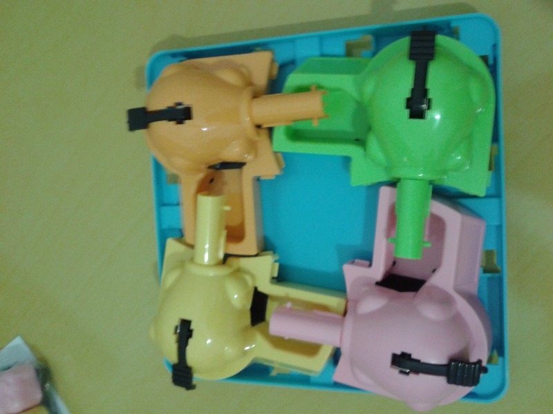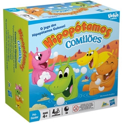 Base do jogo - 4 cabeças de hipopótamos - 4 hipopótamos - 4 lançadores de bolinhas & Canais coletores de bolinhas - 20 bolinhas de plastico - Instruções