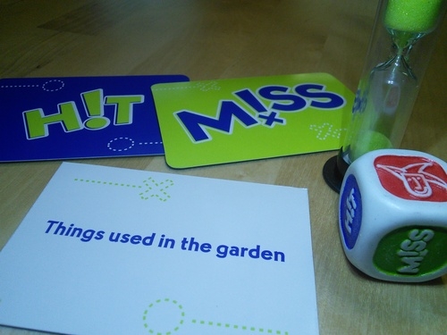 Afie o seu lápis - e sua intuição - para este jogo festivo "pensar-e-fazer". Compre uma carta de categoria e em 45 segundos, liste o máximo de palavras relacionadas que vêm à mente. Quando o tempo se esgotar, role o dado - se ele cair sobre HIT, escolha uma palavra que você acha que todos escreveram; se ele cair em MISS, escolha uma que só você escreveu. Escolha sabiamente e marque pontos. O jogador com maior pontuação ganha. HIT or MISS - o jogo que você não pode perder (MISS) que irá transformar sua próxima festa em um HIT!