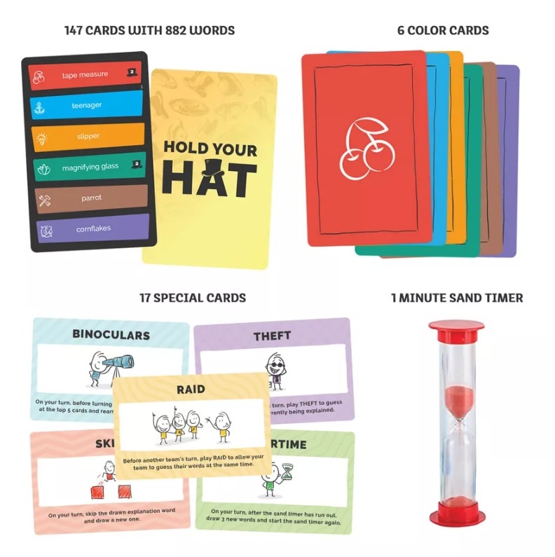 Os jogadores são divididos em equipes e uma carta colorida é selecionada no início do jogo para determinar as palavras que estão sendo adivinhadas. Na vez de cada equipe, um jogador é o fornecedor de pistas e os outros jogadores da equipe tentam adivinhar palavras e frases do baralho de palavras antes que a ampulheta acabe. A vez de cada equipe termina comprando uma carta especial que fornece efeitos poderosos. O jogo é jogado em três rodadas.
