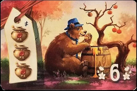 Para completar este Grande Pedido, retorne ao suprimento três tipos diferentes de mel durante seu turno. Esta carta vale 6 pontos.