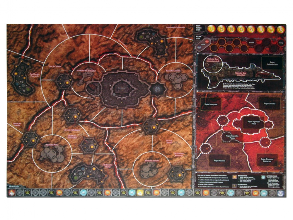 Este conto lendário de traição e heroísmo é trazido à vida vibrante, com mais de cem miniaturas de plástico. O mapa tridimensional da Terra retrata brilhantemente a paisagem circundante ao Palácio Imperial, a partir das fendas cheias de magma para as fortificações que oferecem proteção tanto contra ataques inimigos quanto a bombardeios orbitais.