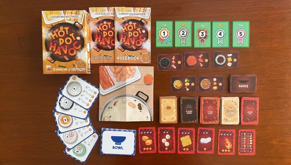 Hotpot Havoc é um jogo de 2 a 5 jogadores em que primeiro escolhe os talheres de sua escolha, que darão pontos com base na quantidade de comida que você colocar dentro deles. Colocar muita comida resultará em pontos de demérito para a rodada. Enquanto isso, você precisa folhear rapidamente seu baralho de ingredientes, procurando os ingredientes que deseja manter e jogando fora aqueles que não deseja manter em uma panela pública. Os jogadores podem pegar ingredientes na panela pública. Assim que os jogadores estiverem satisfeitos com os ingredientes que possuem, eles podem pegar uma etiqueta de ordem do turno de sua escolha, que lhes dará a opção de selecionar diferentes tipos de molhos, que irão conceder pontos de bônus com base nos tipos de ingredientes que eles têm em seus recipientes. O jogador com mais pontos ganha!