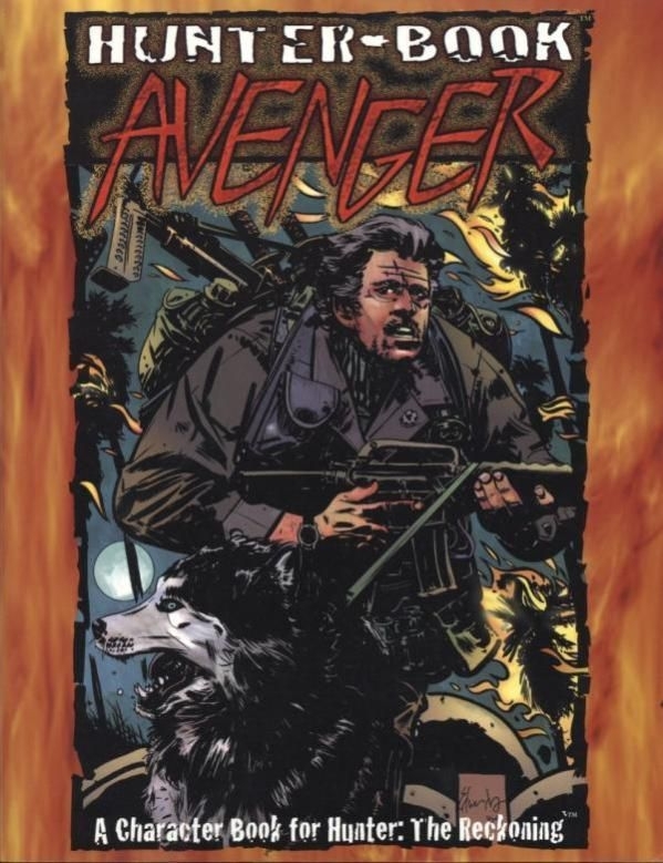 O livro de referências "Hunter Book: Avenger" começa com várias páginas do hunter.net e uma pequena história.