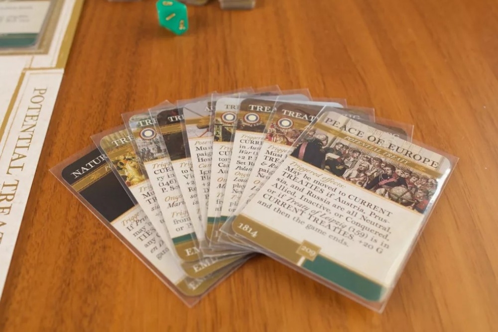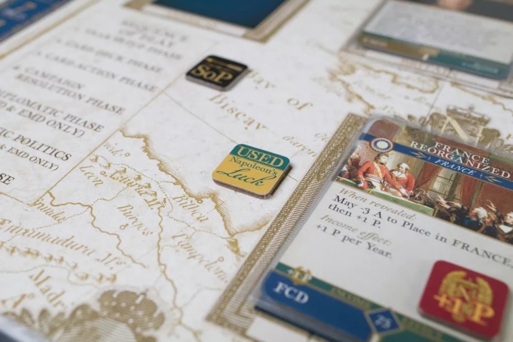 Em I, Napoleon, seu destino está em 220 cartas lindamente ilustradas, divididas em três baralhos: Comandante, Primeiro Cônsul e Imperador. Sobrepondo um mapa da Europa do início do século 19, há uma série de card boxes, onde você joga os eventos de sua vida e carreira, junto com várias trilhas e tabelas para registrar a passagem anual do tempo e os eventos que afetam você e a França. As escolhas que você faz com as cartas que recebe determinarão o sucesso ou o fracasso. Você terá que gerenciar a política, as campanhas militares, a diplomacia e o bem-estar doméstico dos franceses enquanto persegue a Glória que o atrai. Você também terá que administrar sua família, suas esposas, suas amantes e seus filhos, legítimos ou não.
