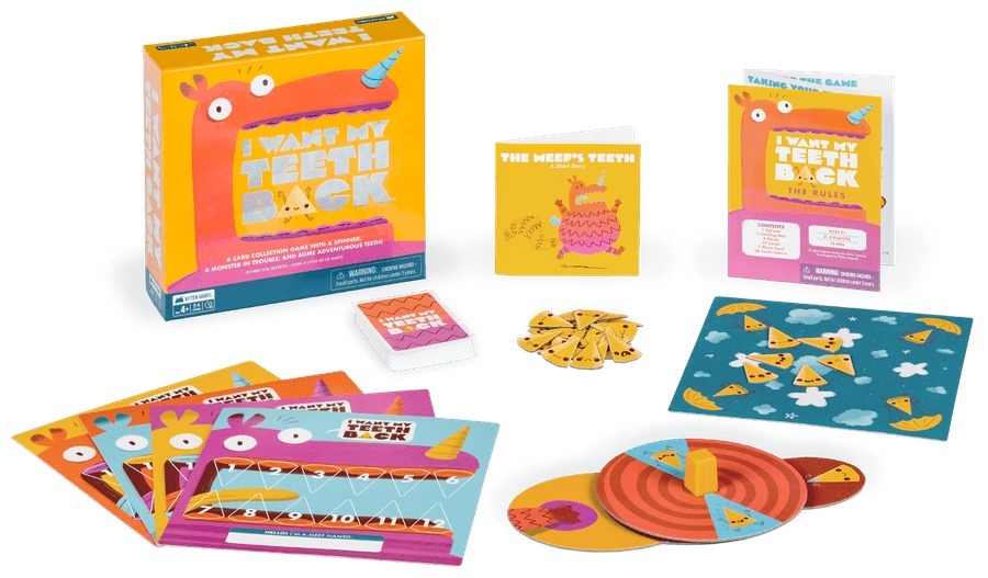 Em I Want My Teeth Back, os jogadores decidem estrategicamente quando girar uma roda para ter a oportunidade de coletar dentes perdidos. O primeiro jogador a coletar uma "boca cheia" de dentes vence.