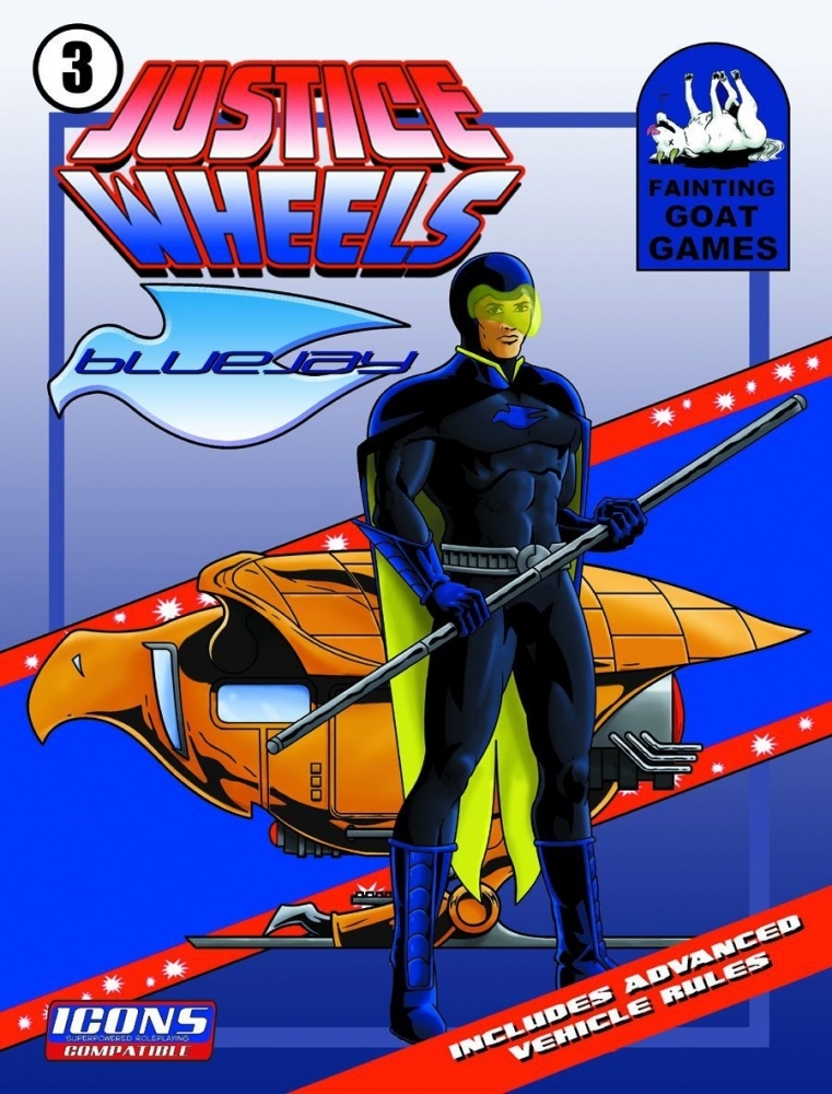Justice Wheels # 3 apresenta Bluejay - um vigilante fantasiado que voa alto que luta contra criminosos de sua aeronave, a Golden Eagle
