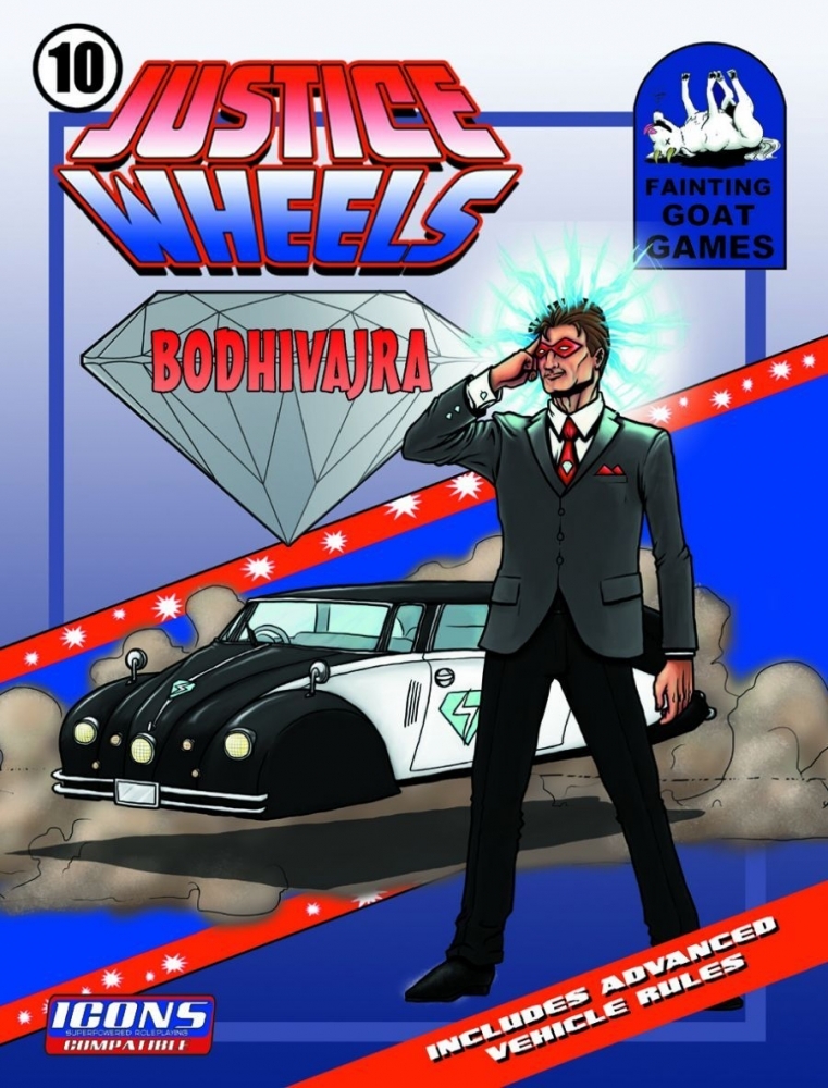 Justice Wheels # 10 apresenta Bodhivajra, um místico iluminado na tradição pulp que usa sua consciência cósmica (junto com um forte gancho de esquerda e seu carro voador; o Vajramobile) para ajudar os necessitados.