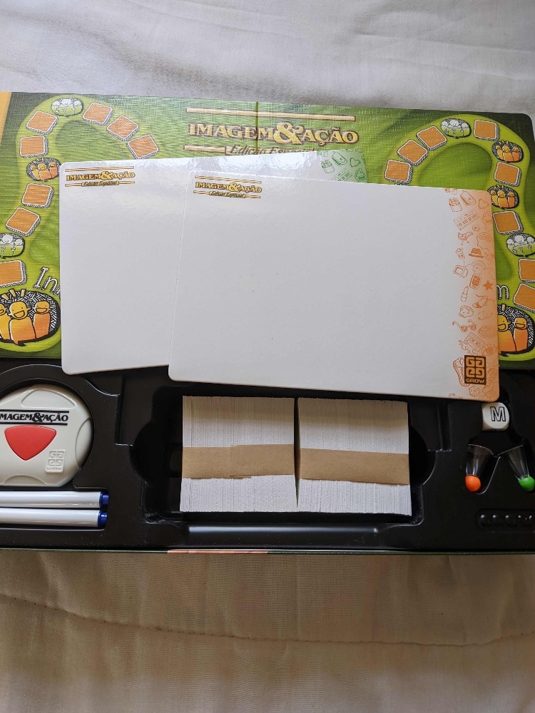 Neste jogo você não precisa ser desenhista, o que vale é a imaginação! São 3.000 palavras ou expressões, divididas em 6 categorias. Cada jogador será o desenhista e, na sua vez, tentará passar à sua equipe uma palavra ou expressão. É proibido falar, escrever letras e números e fazer gestos ou mímicas. Os únicos instrumentos que o jogador terá à disposição são o quadro-branco e a caneta especial, para desenhar, esboçar e rabiscar o que quiser. Os colegas de equipe têm o tempo do timer para adivinhar!