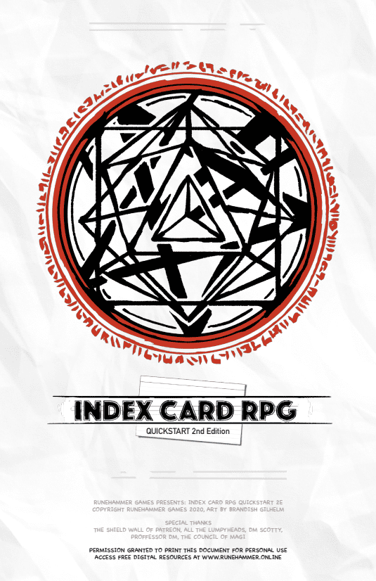 Index Card RPG: Master Edition - Quickstart 2nd Edition (2021)
