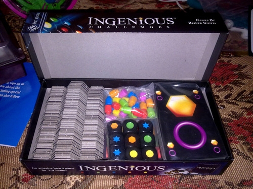 Criado pelo renomado designer de jogos Reiner Knizia, Ingenious Challenges contém três jogos de destreza mental, para 2-4 jogadores. Mantendo o espírito de seu jogo de tabuleiro predecessor Ingenious, os jogos em Ingenious Challenges desafia os jogadores a marcarem tantos pontos quanto possível em cada símbolo / cor ao mesmo tempo, forçando-os a marcar pontos em todas as cores / símbolos, a fim de se sair bem. Quatro painéis de avaliação com pinos coloridos e faixas para cada cor são usados ​​em cada jogo, enquanto os dados, cartas e símbolos são usados ​​separadamente em seus jogos particulares.