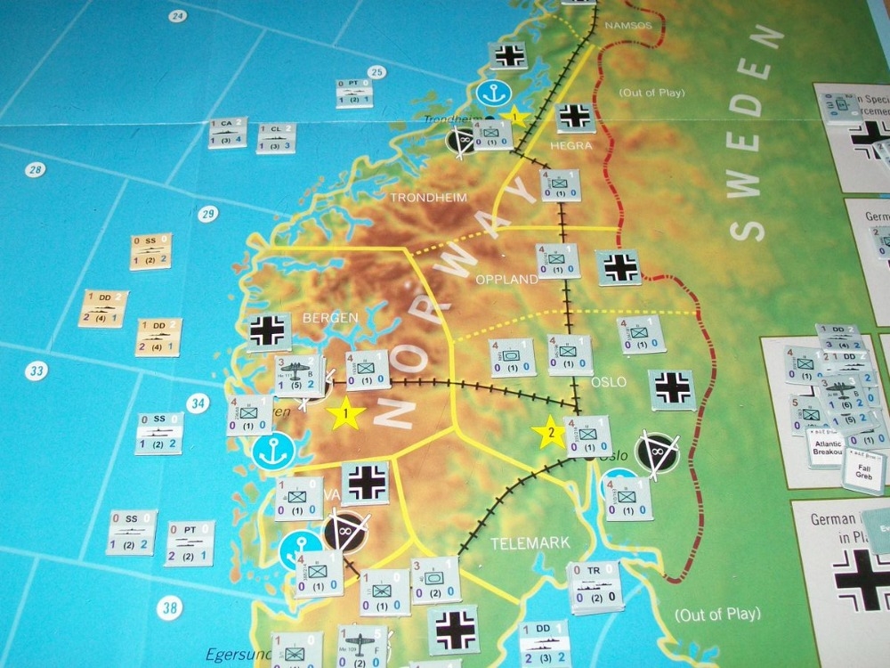 Marcadores de jogo retratam as forças armadas alemãs, norueguesas, britânicas, francesas e polonesas como batalhões e companhias de unidades terrestres e esquadrões de aviões, enquanto as unidades navais são navios de combate individuais como cruzadores ou navios maiores, ou ainda grupos de navios menores.