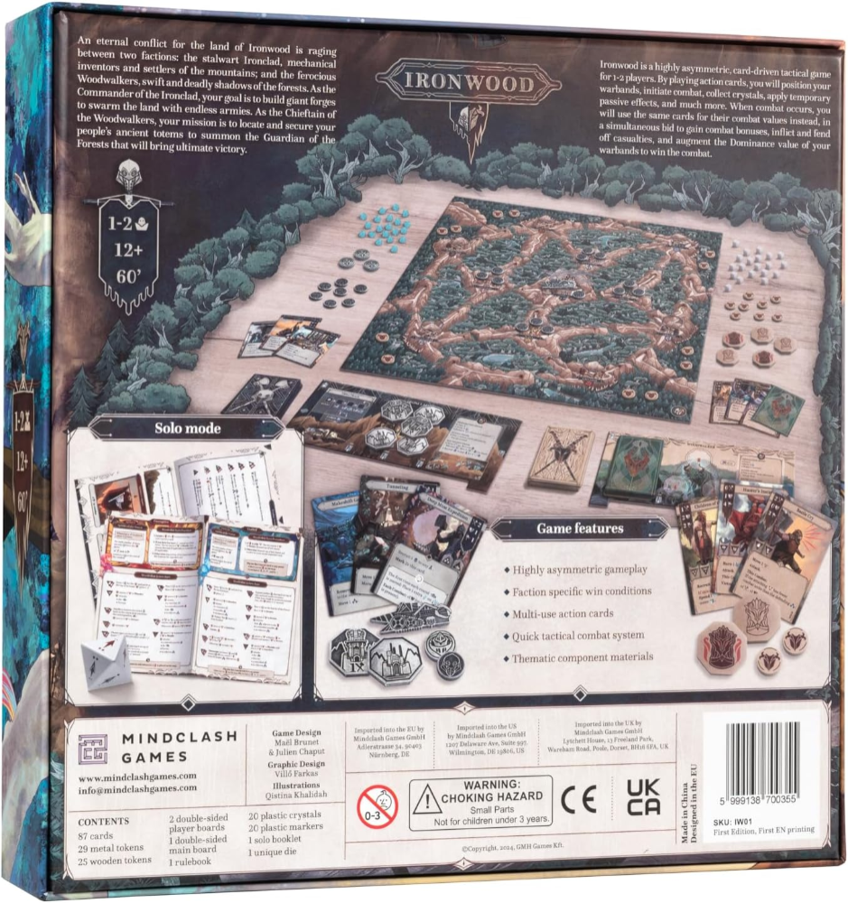 Ironwood também apresenta um modo solo de baixa manutenção contra o Ironclad ou os Woodwalkers. Embora ambos os oponentes solo trabalhem com os mesmos princípios básicos, cada um deles possui aspectos e características únicos de sua facção.